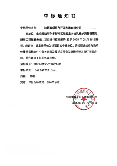 - 鉆井分公司中標(biāo)張家峁水文地質(zhì)探查工程2025-09-24